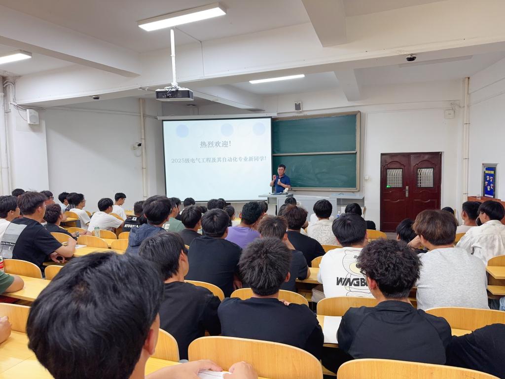 2025年9月18日,电气信息学院召开2025级电气工程及其自动化专业介绍会,会议由电气工程及其自动化专业系主任贾文超主讲,2025级电气工程及其自动化专业全体新生参加。贾文超老师系统阐述了专业培养目标、课程体系、专业特色及就业前景,强调本专业聚焦电力系统与智能制造方向,注重通过工程实践教学培养学生的创新能力。现场交流氛围活跃,增强了新生对专业发展的信心与学习动力。