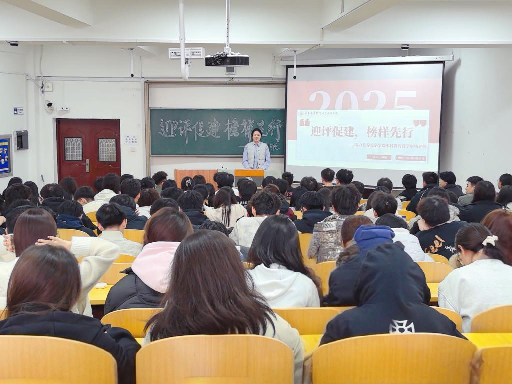 会上,马闽营老师围绕四个核心方面进行了深入讲解与动员:一是“深刻认识:本科教育教学审核评估的重要意义”,引导同学们从学校发展全局的高度理解评估工作的关键性;二是“担当作为:学生骨干在迎评促建中的责任定位与行动表率”,明确了学生骨干在评估工作中的角色与使命;三是“凝心聚力:总结展望与要求落实”,对前期工作进行总结并对后续具体落实提出明确要求;四是“凝心聚力:迎评行动号召”,发出了积极参与评估的响亮号召。