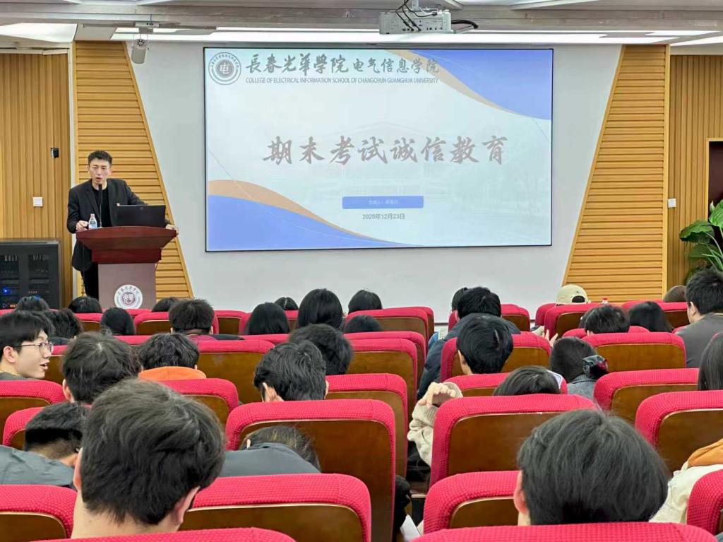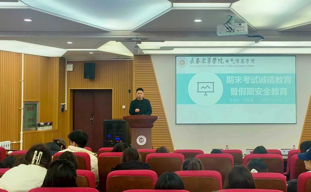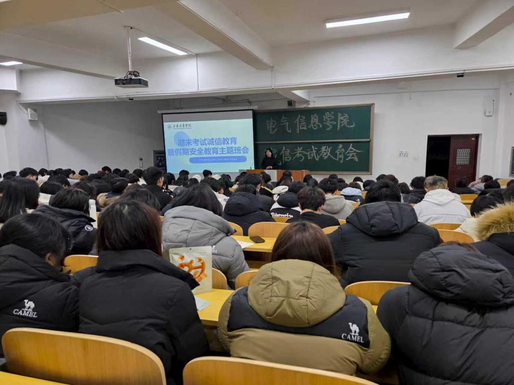 2025年12月22日-30日,电气信息学院分年级召开诚信考试暨寒假安全教育大会。会议由各年级辅导员主讲,全体学生参加。会议首先结合学校制度,系统讲解考试纪律与违纪处理规定,引导学生诚信应考。随后,围绕寒假出行、防诈骗、消防及网络安全等重点内容展开提醒,帮助学生增强自我保护意识。本次大会既强化了学生的规矩意识与诚信观念,也为平安度过期末和寒假筑牢了思想防线。