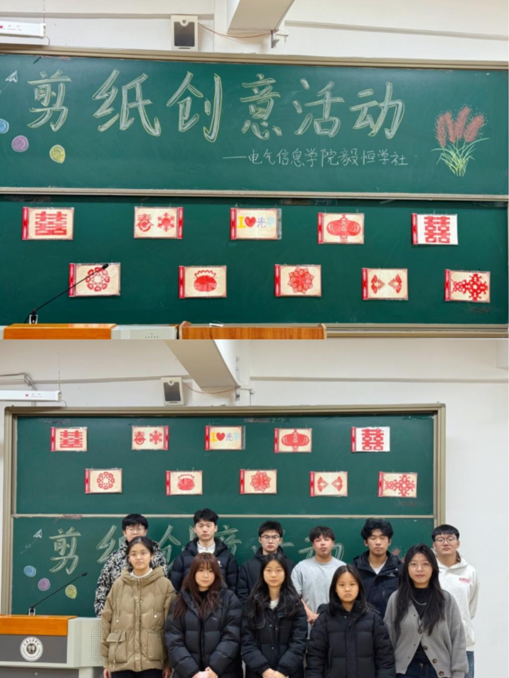 2025年12月1日-21日,电气信息学院养成教育毅恒学社开展“纸韵匠心,情系校园”优秀传统文化传承好习惯认领活动,毅恒学社全体成员参加。活动融合剪纸技艺与校园文化,通过呈现同学们从生疏到熟练、再到创作校训建筑等剪纸作品的过程,在叠剪镂刻中提升了同学们的专注力与审美素养,加深了同学们对校园的文化认同与情感归属。