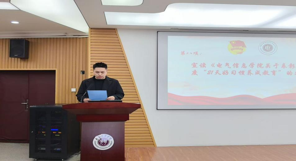 2025年12月16日,电气信息学院在英华楼214举行2025年度养成教育表彰大会,党总支副书记李艳及全体辅导员出席大会,学生代表参加。